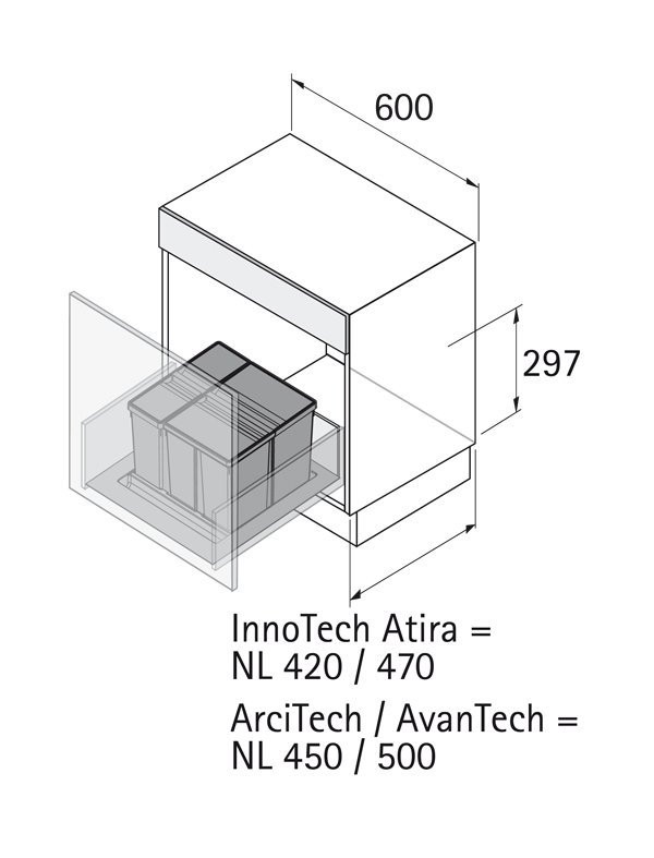 Nennlänge (NL) 450 / 500 mm oder für InnoTech Atira, Nennlänge (NL) 420 / 470 mm - Für Schrankbreite 600 mm