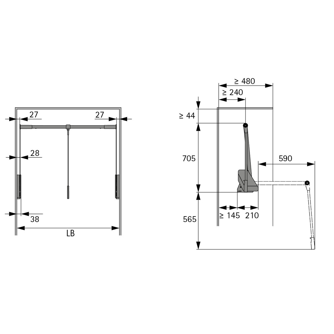 HETTICH Conero Kleiderlift LKB 625-808MM Zuladun g 12kg, schwarz