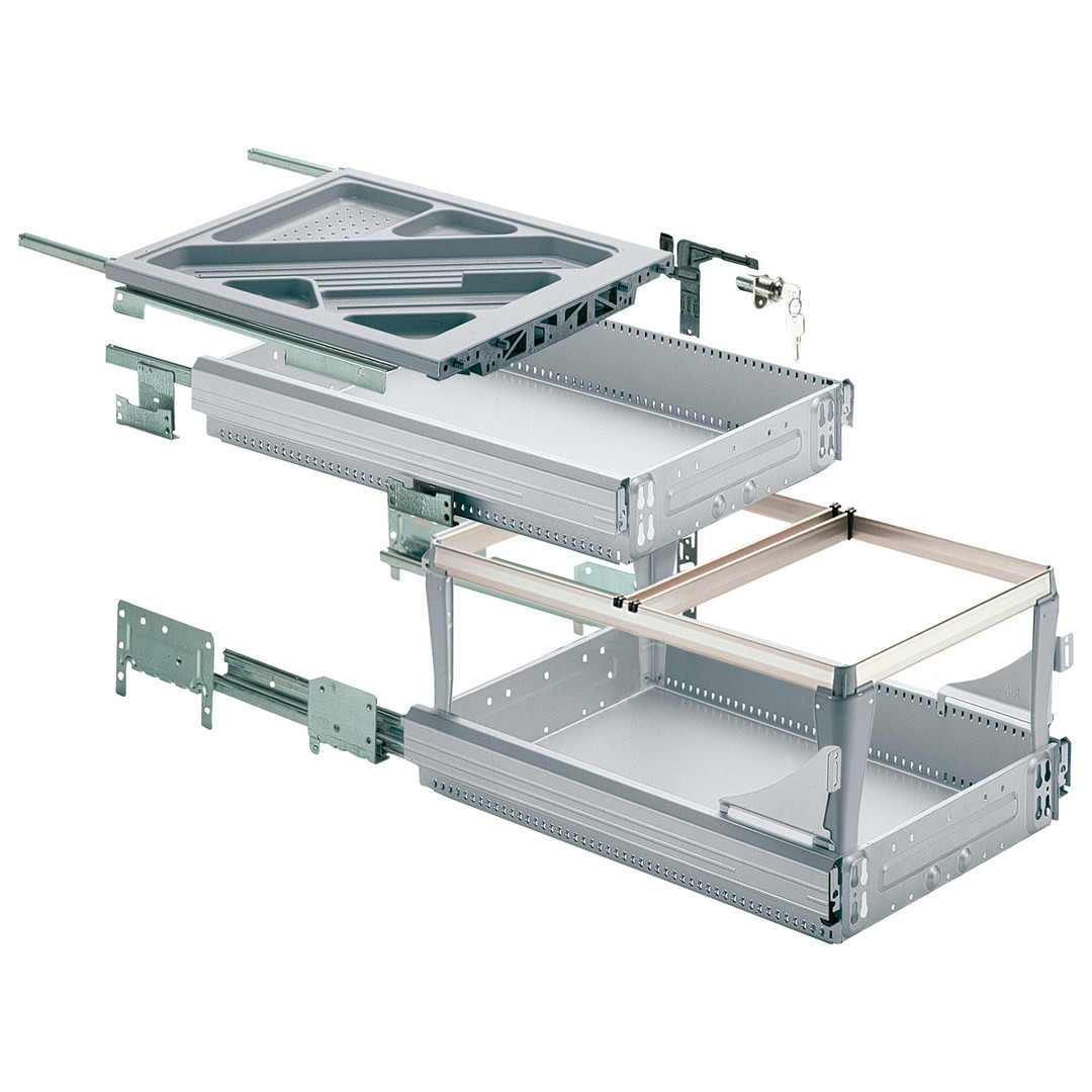 Hettich Container-Set mit Teil- und Überauszügen, 392 x 530, Aluminium Optik