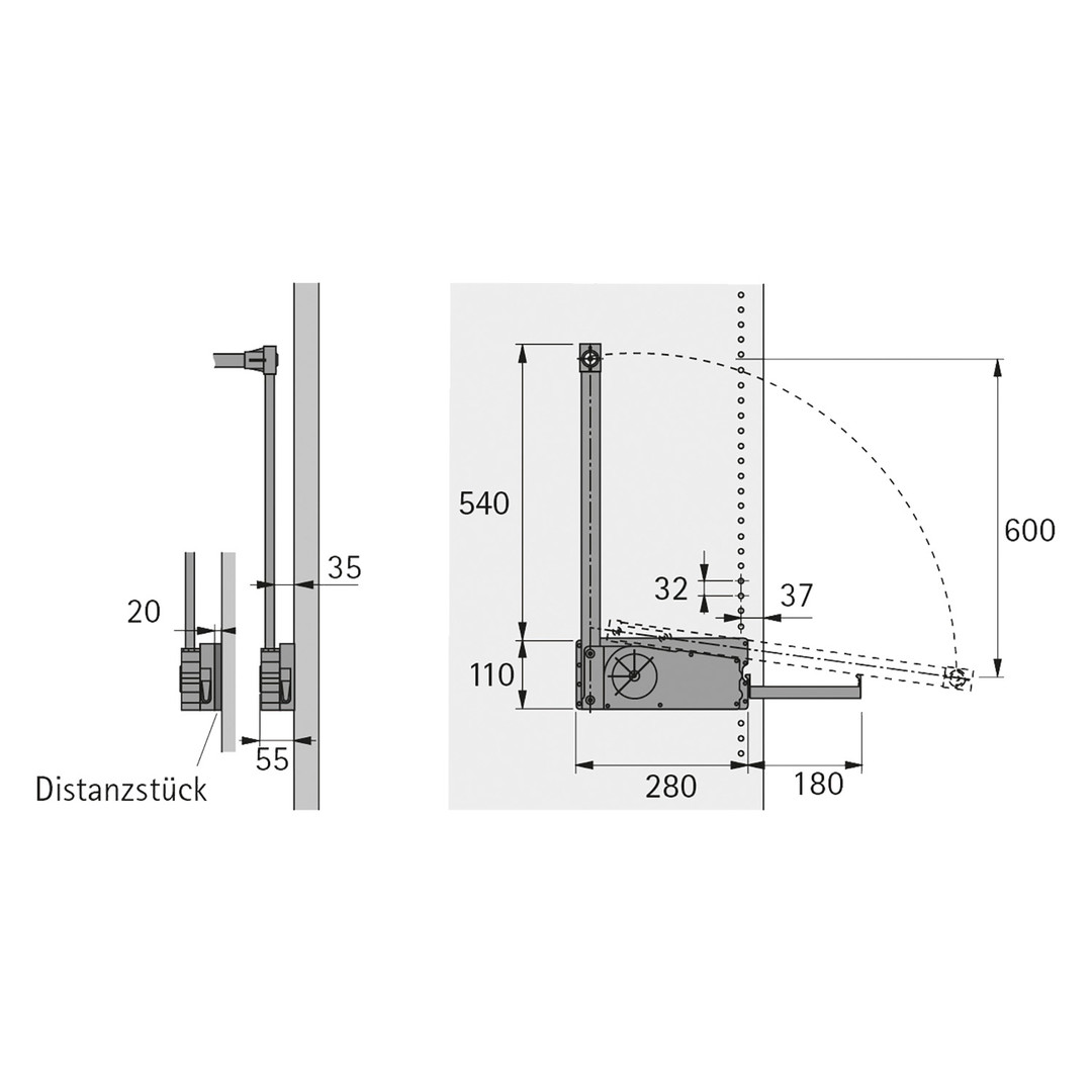 - Gehäuse, Schwenkarm und Distanzstück