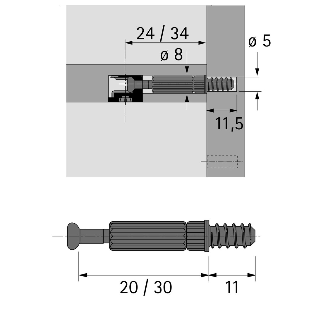 HETTICH Einschraubdübel Twister DU 232 T, 30 mm, schwarz