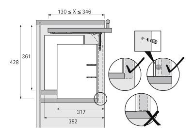 - Der Griff muss in der Mitte der Klappenfront montiert sein