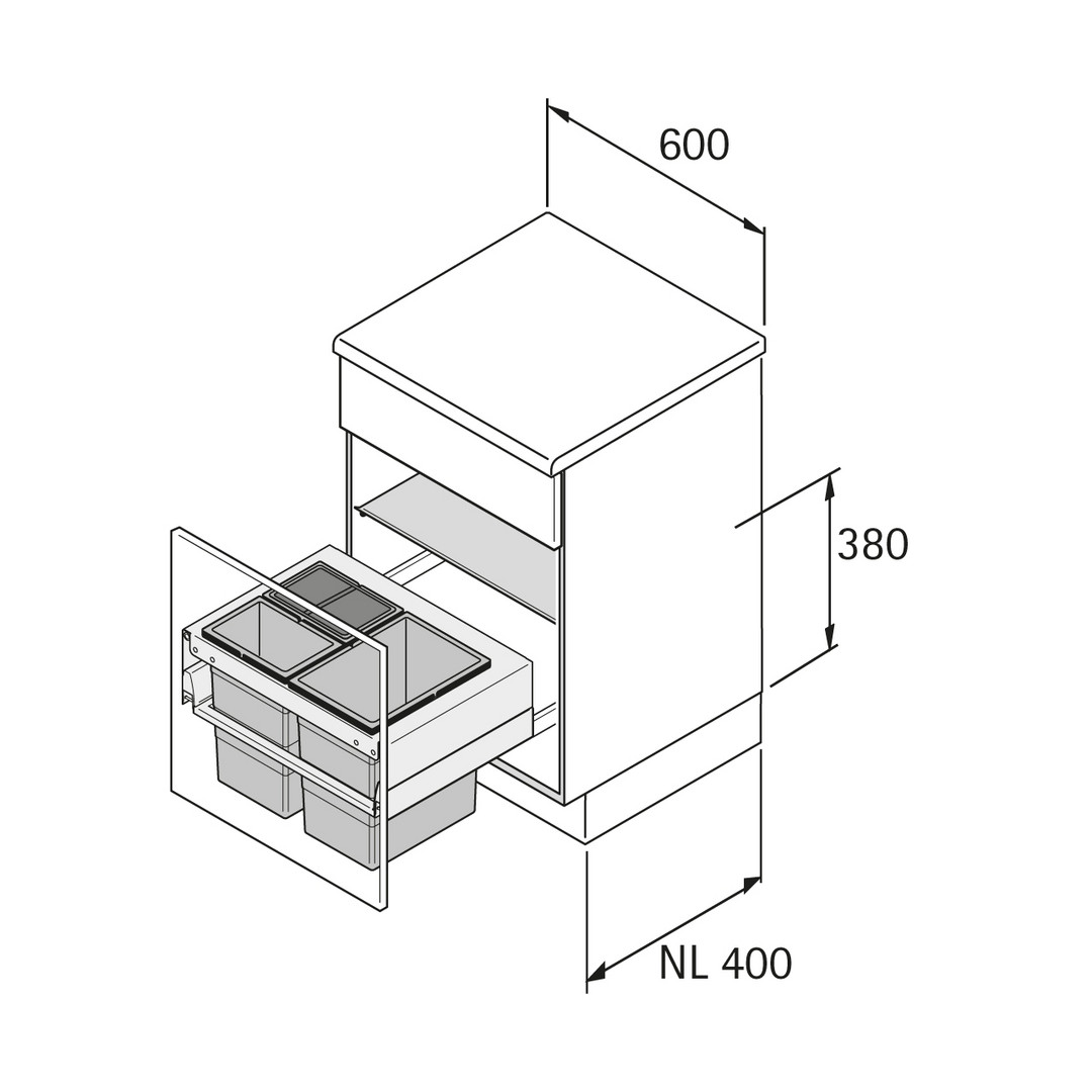 HETTICH Frame f. AT Abfallsystem NL400mm KB600mm 20l+2x10l anthrazit