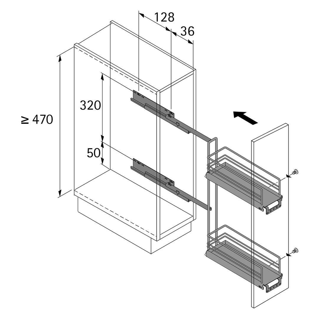 HETTICH Frontauszug, 2-etagig, 470mm, verchromt