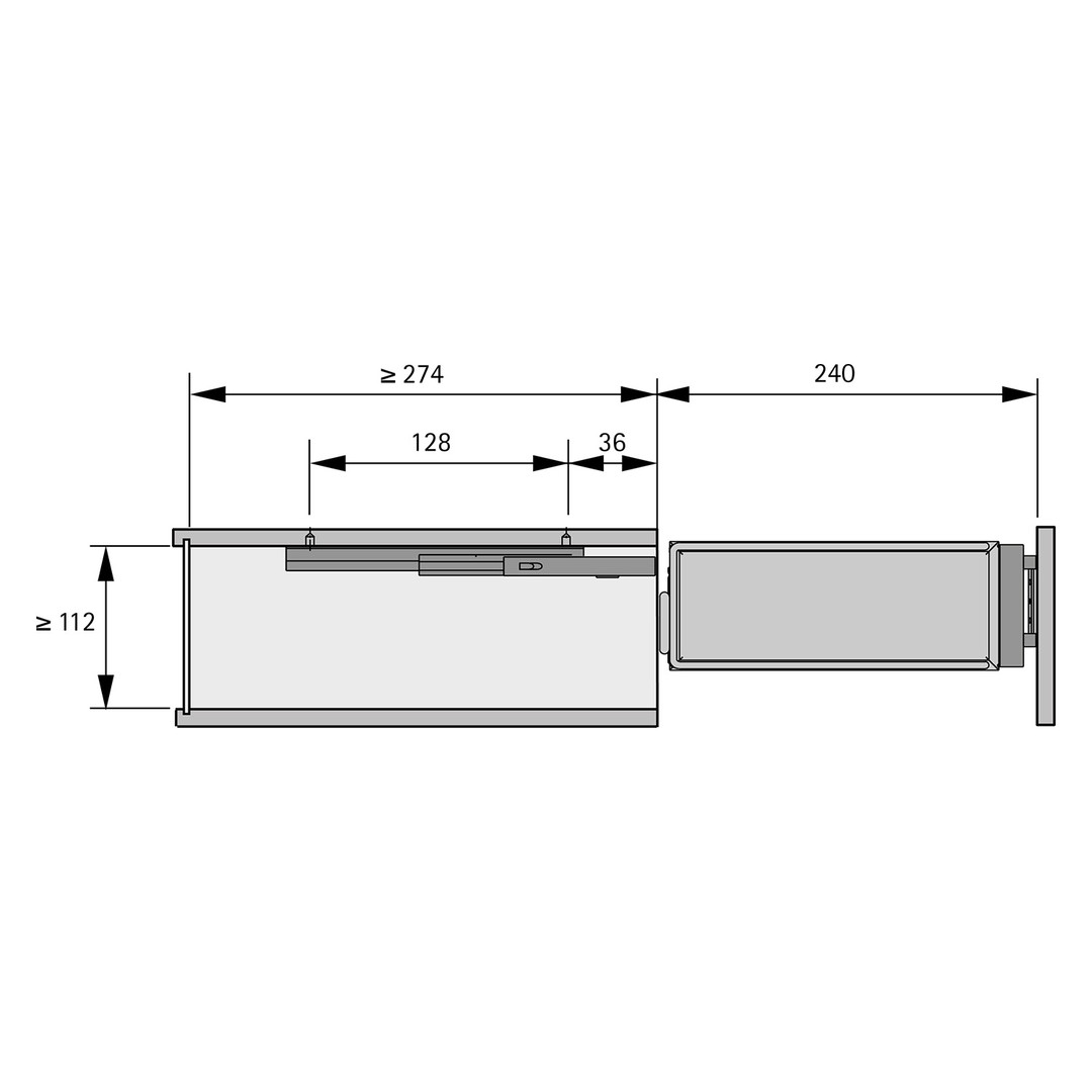 - Lichte Mindestkorpusmaße Breite 112 mm - Tiefe 274 mm - Höhe 470 mm