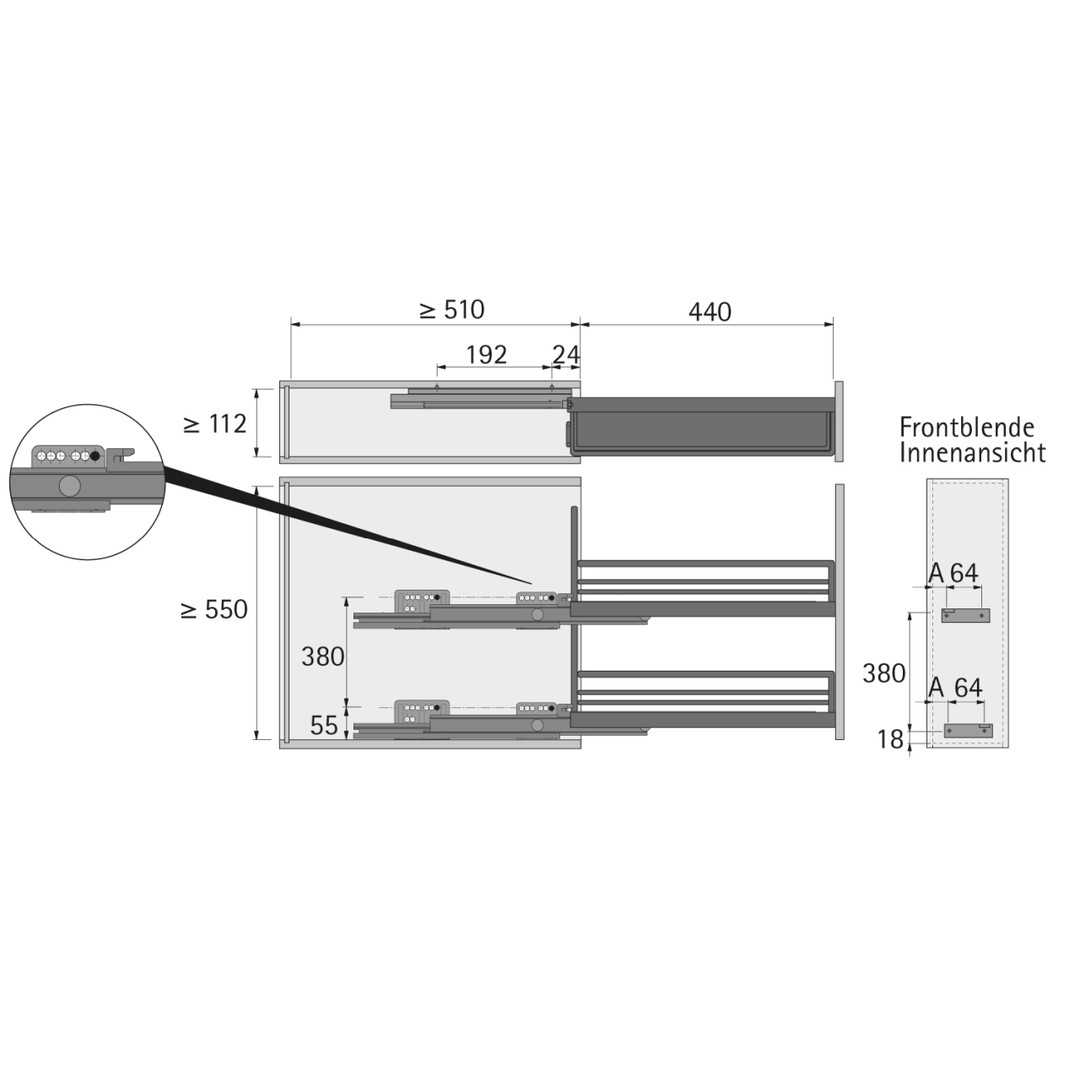 - Lichte Mindestkorpusmaße - Breite 112 mm - Tiefe 510 mm - Höhe 550 mm