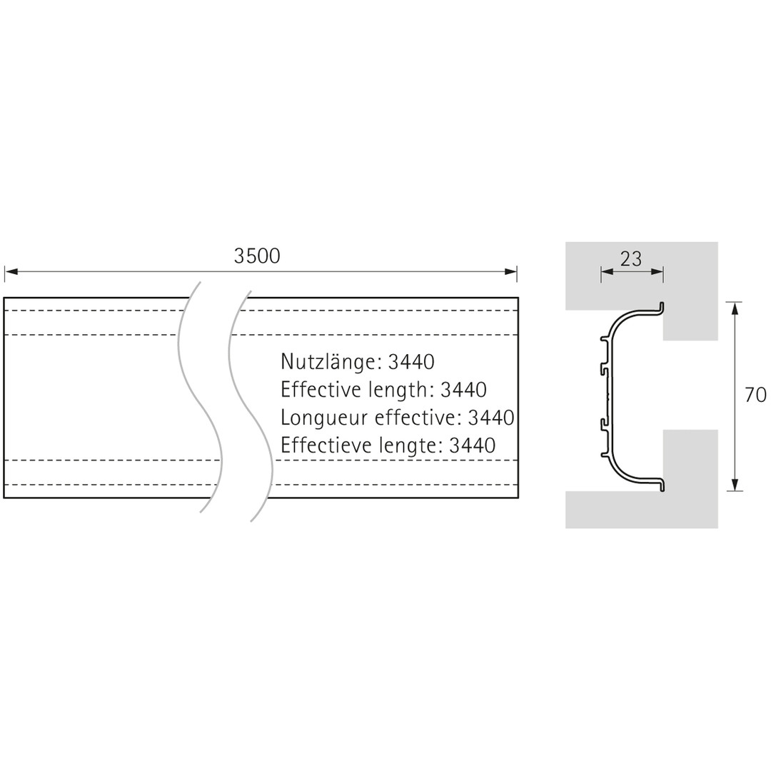 Griffleiste Canis C, L 3500 mm, B 23 mm, H 70 mm, Edelstahl Optik