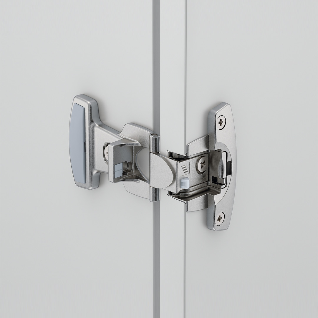 - Eingelenkscharnier mit Aufklipstechnik und sichtbarer Rolle