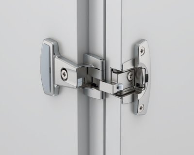 - Eingelenkzwillingsscharnier mit Aufklipstechnik und sichtbarer Rolle