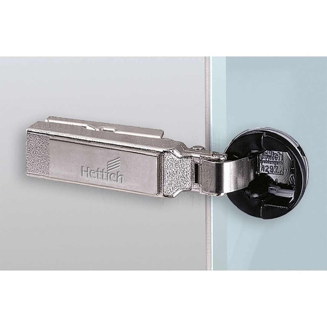 Hettich Intermat Glastürscharnier (Intermat 9904), einliegend, Öffnungswinkel 95°, zum Anschrauben (-)