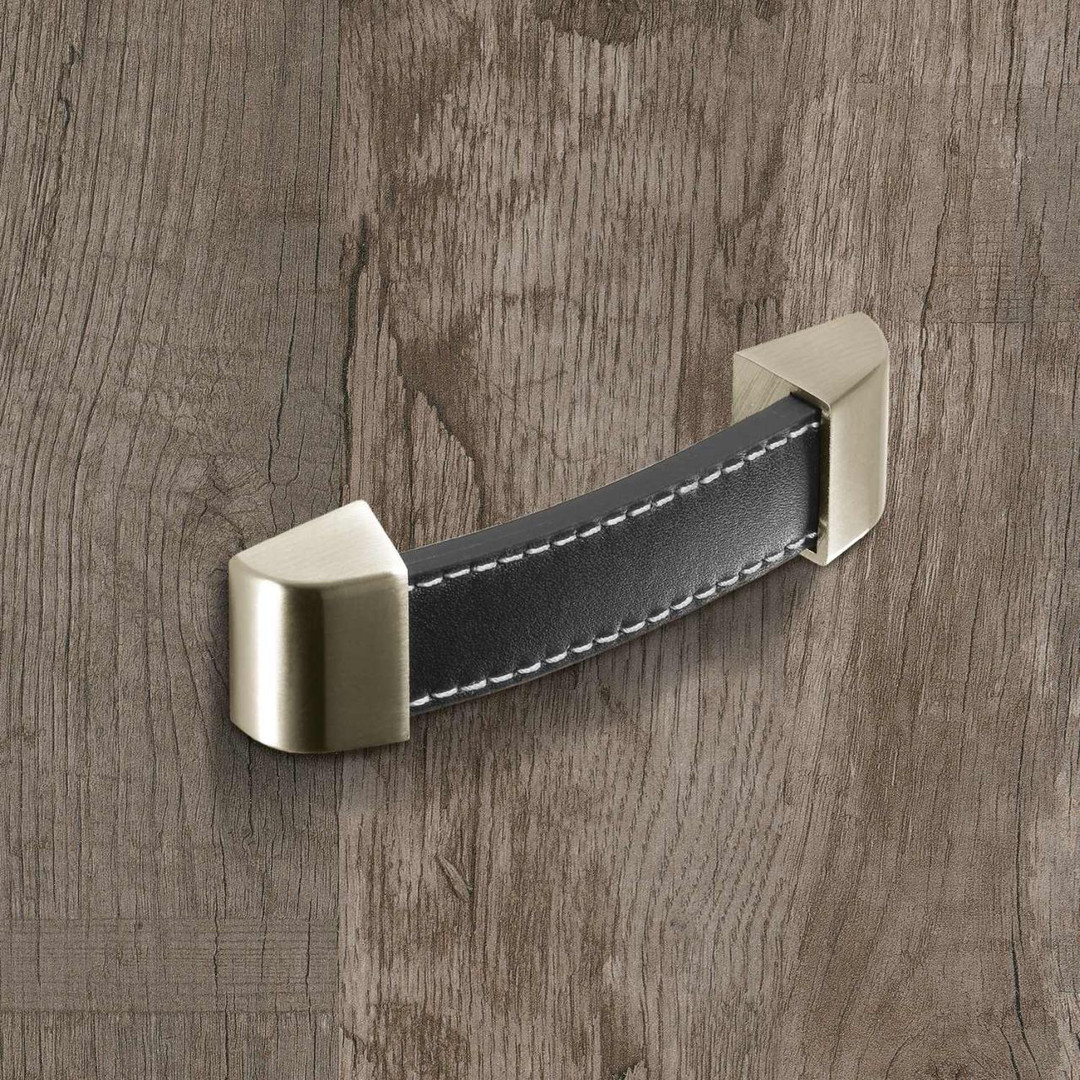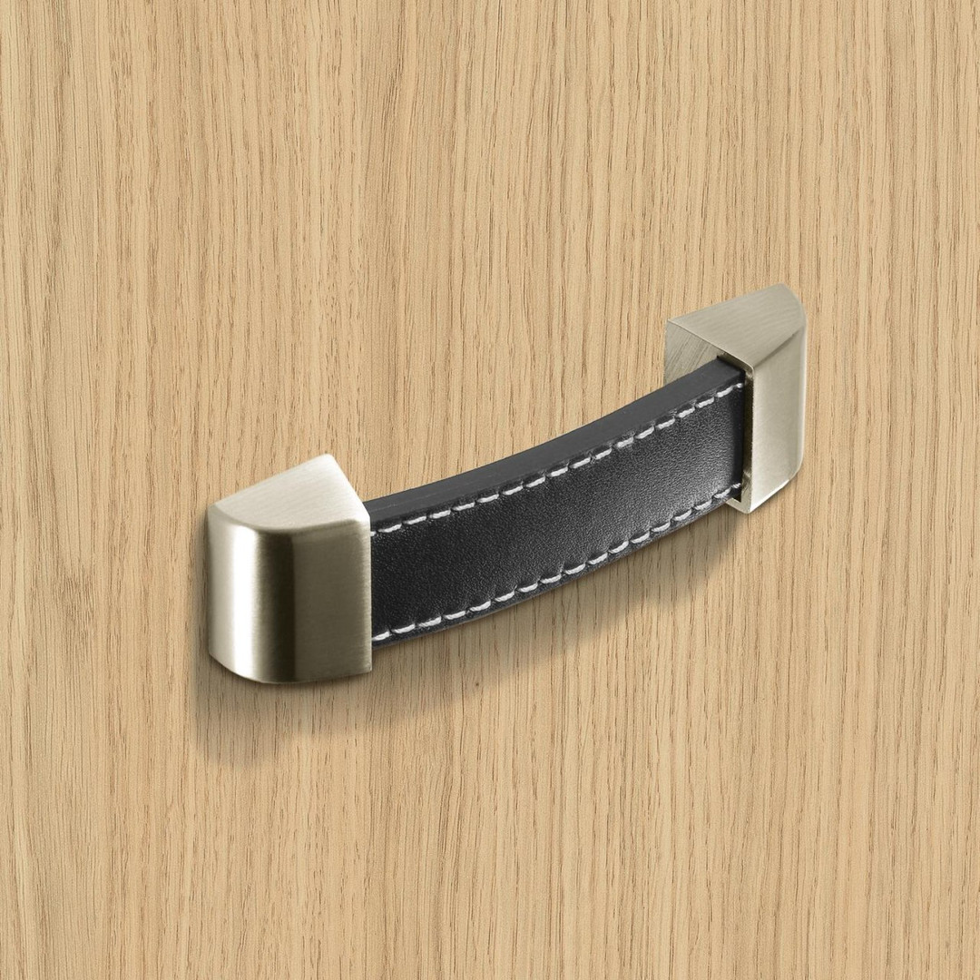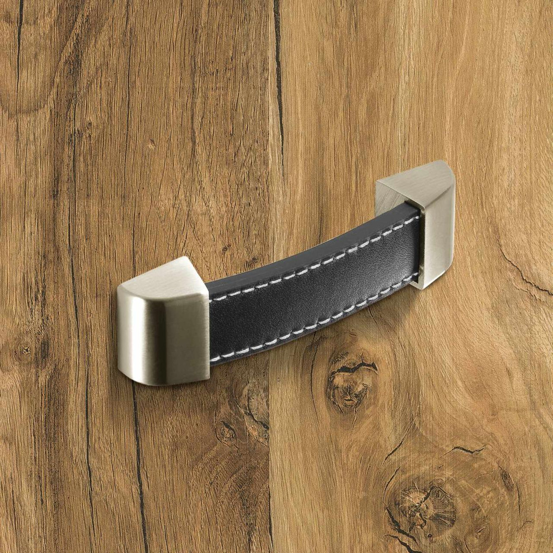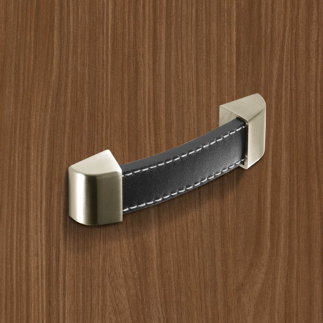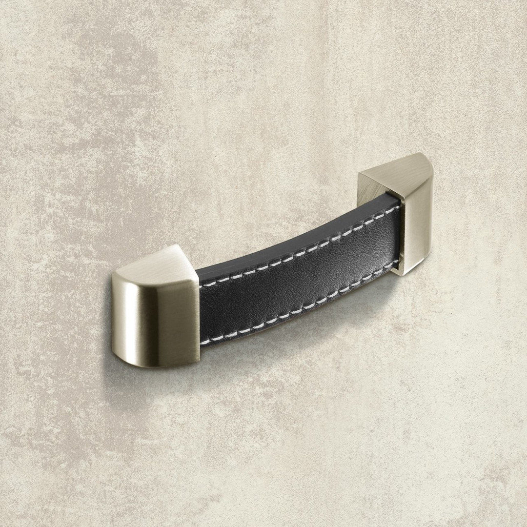 Variante: HETTICH Möbelgriff "Agliano" - Leder braun / Edelstahl Optik gebürstet