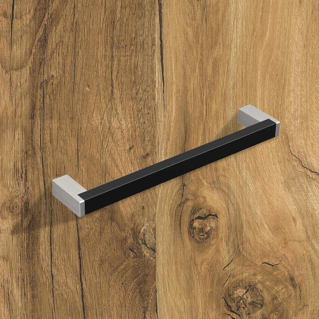 HETTICH Möbelgriff "Bermeo" - Schwarz matt / Edelstahl Optik gebürstet - BA 160mm