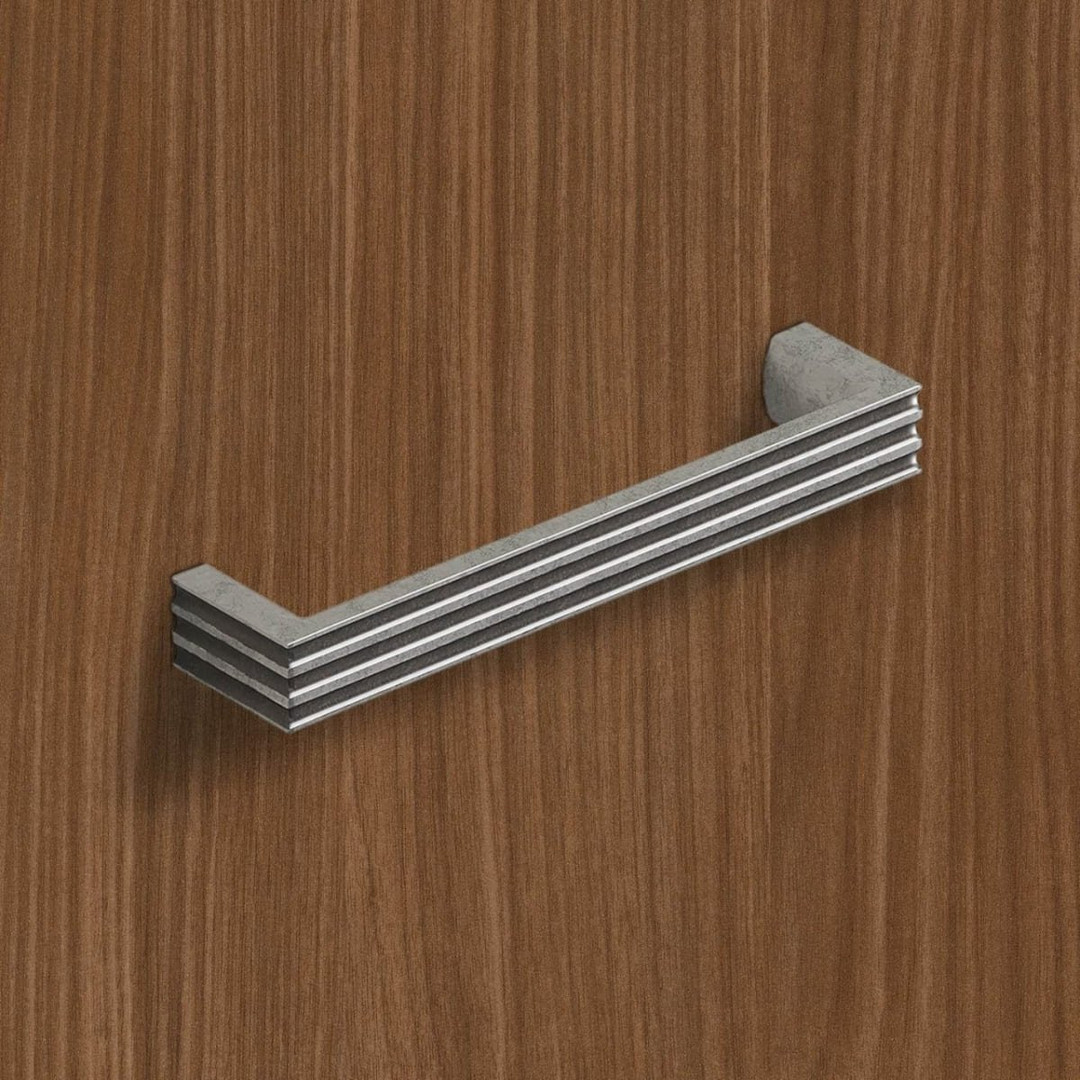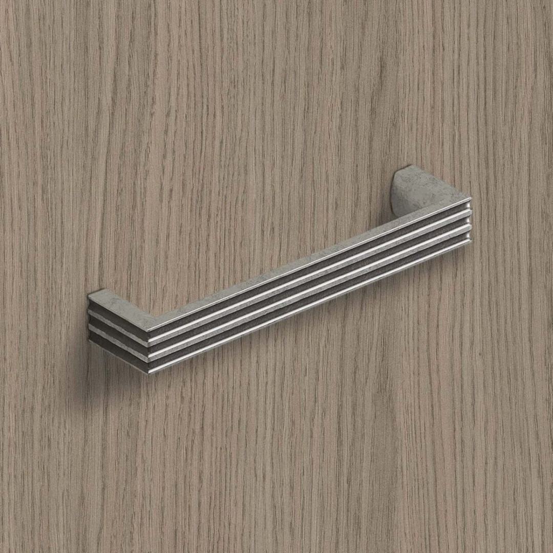 Griff Cato, Bohrabstand 128, L 138 mm, B 17 mm, H 30 mm, Zinn Optik antik