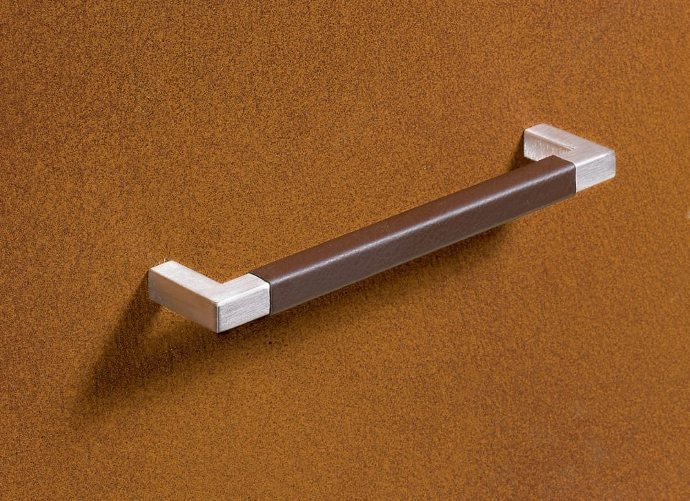 Griff Getafe, Bohrabstand 224, L 234 mm, B 10 mm, H 32 mm, Leder dunkelbraun / Edelstahl gebürstet