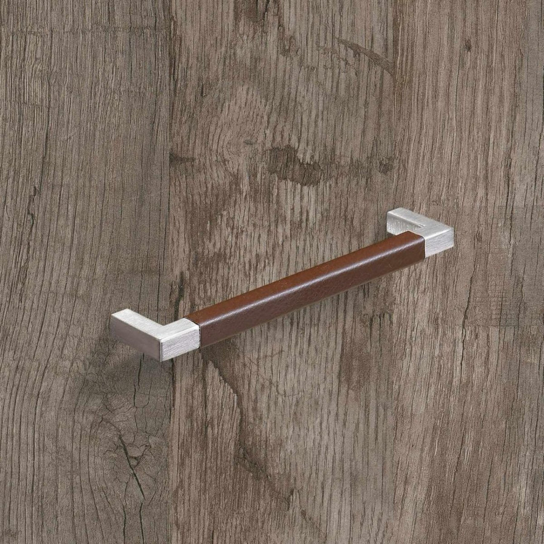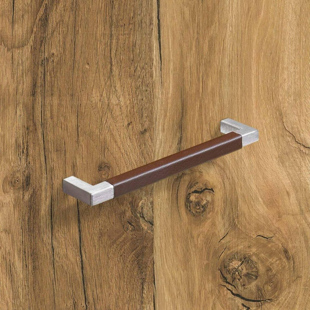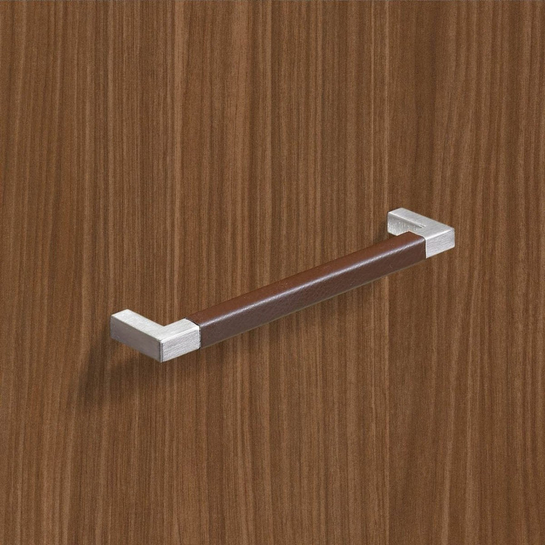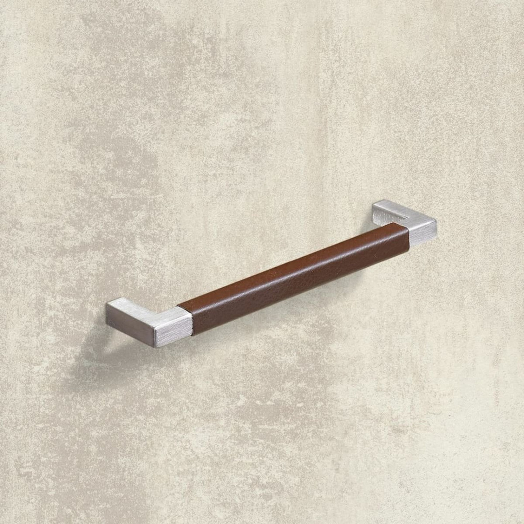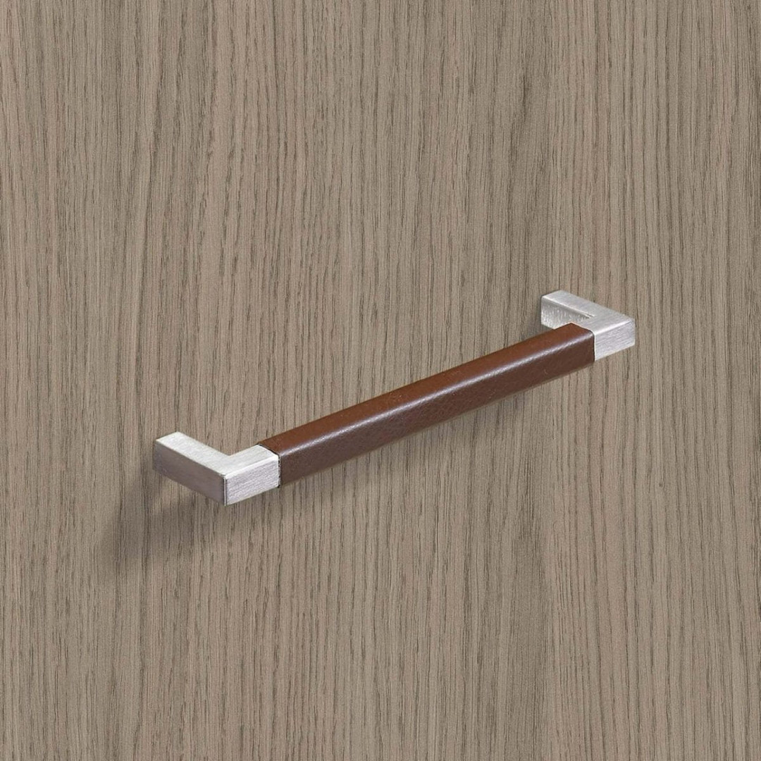 HETTICH Möbelgriff "Getafe" - Leder hellbraun / Edelstahl gebürstet - BA 160mm