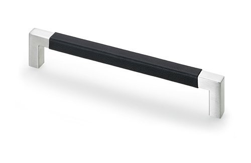 HETTICH Möbelgriff "Getafe" - Leder schwarz / Edelstahl gebürstet - BA 224mm