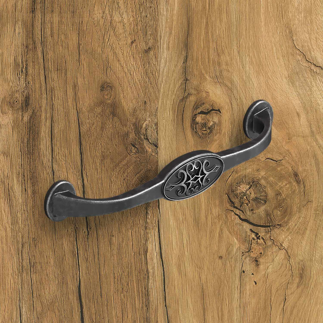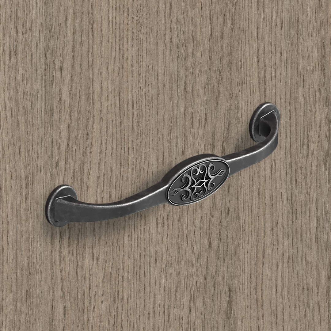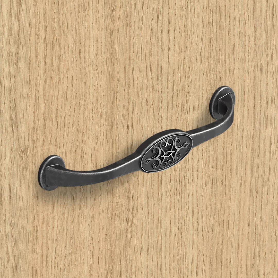 Griff Siradia, Bohrabstand 128, L 149 mm, B 23 mm, H 29 mm, Zinn Optik antik