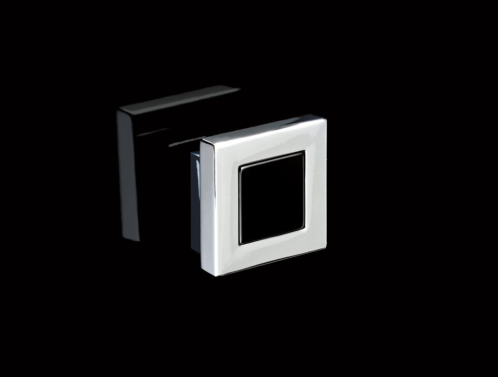 Knopf Arimini, L 34 mm, B 34 mm, H 21 mm, Verchromt glanz / Schwarz