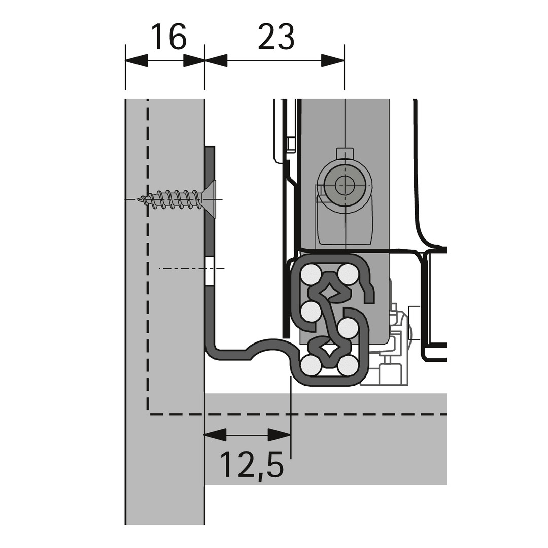 | Einbaubreite / Korpusseitendicke | EB 12,5 (Korpusseitendicke 16 mm) |