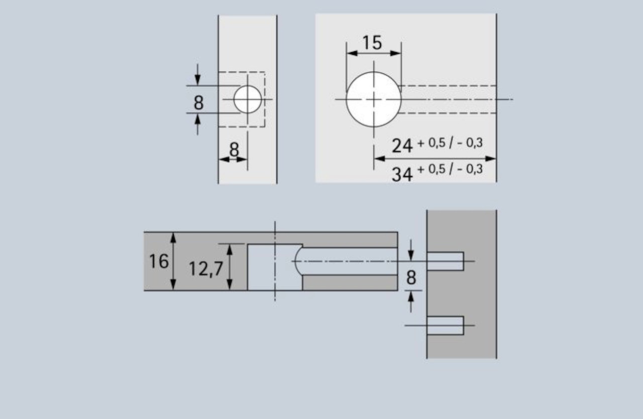 - Doppelte Sicherheit durch Innen- und Außenrastung - der Dübel wird immer zentrisch angezogen, ein Versetzen der Möbelteile ist somit ausgeschlossen!