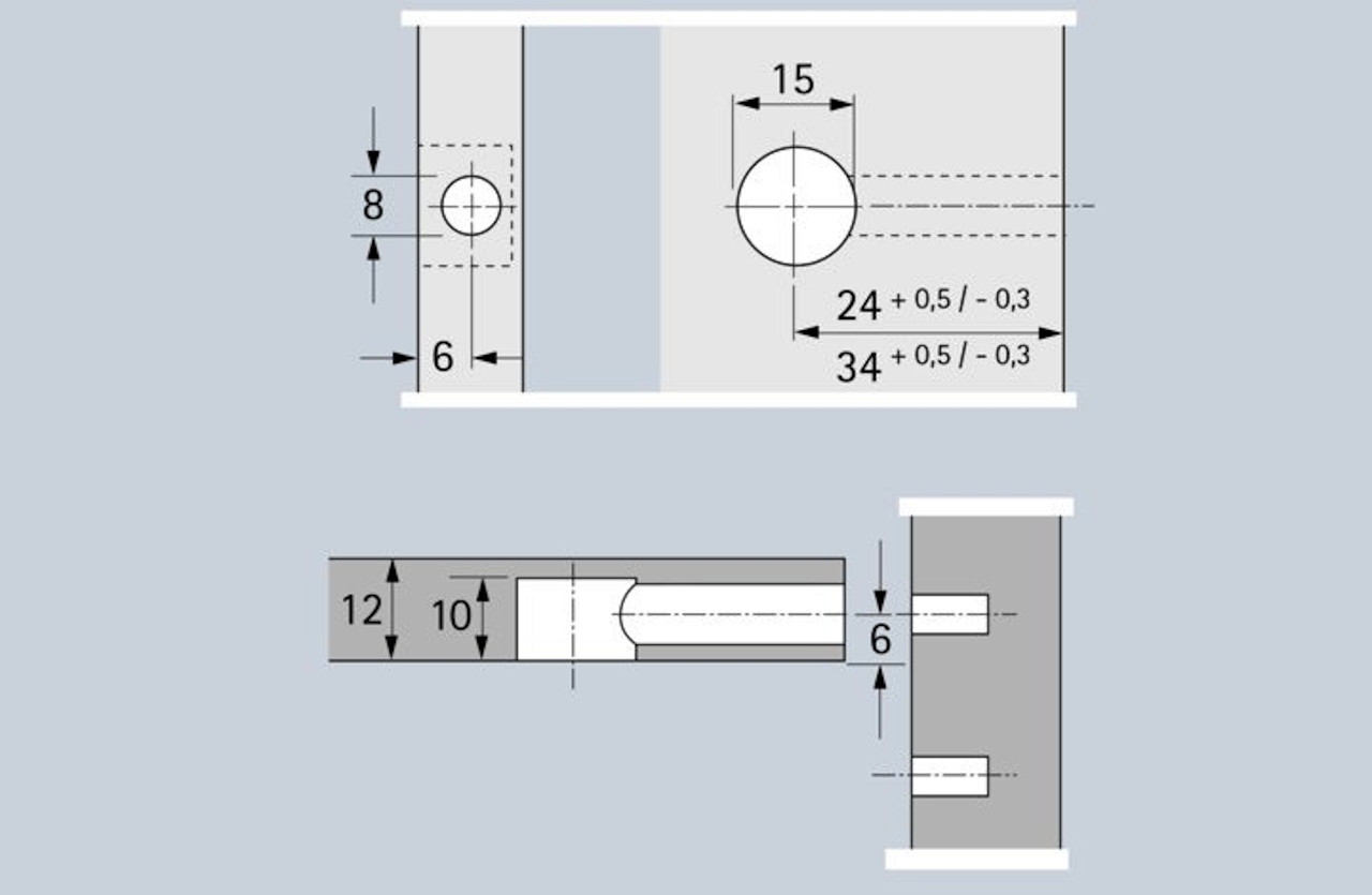 • Doppelte Sicherheit durch Innen- und Außenrastung - der Dübel wird immer zentrisch angezogen, ein Versetzen der Möbelteile ist somit ausgeschlossen!