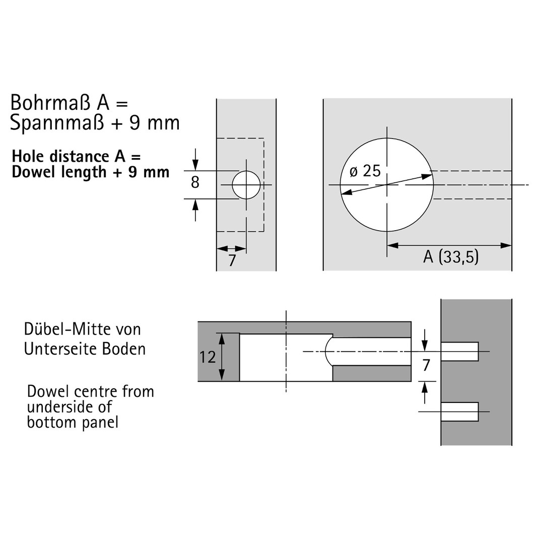 HETTICH Rastex 25 ohne Abdeckrand, blank