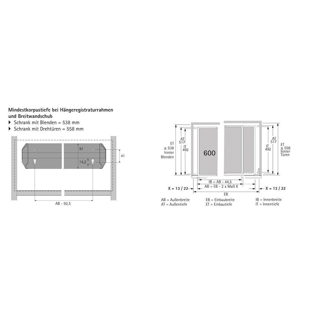 | Einsatzbereich | Schrankwand, Tiefe 600 mm |