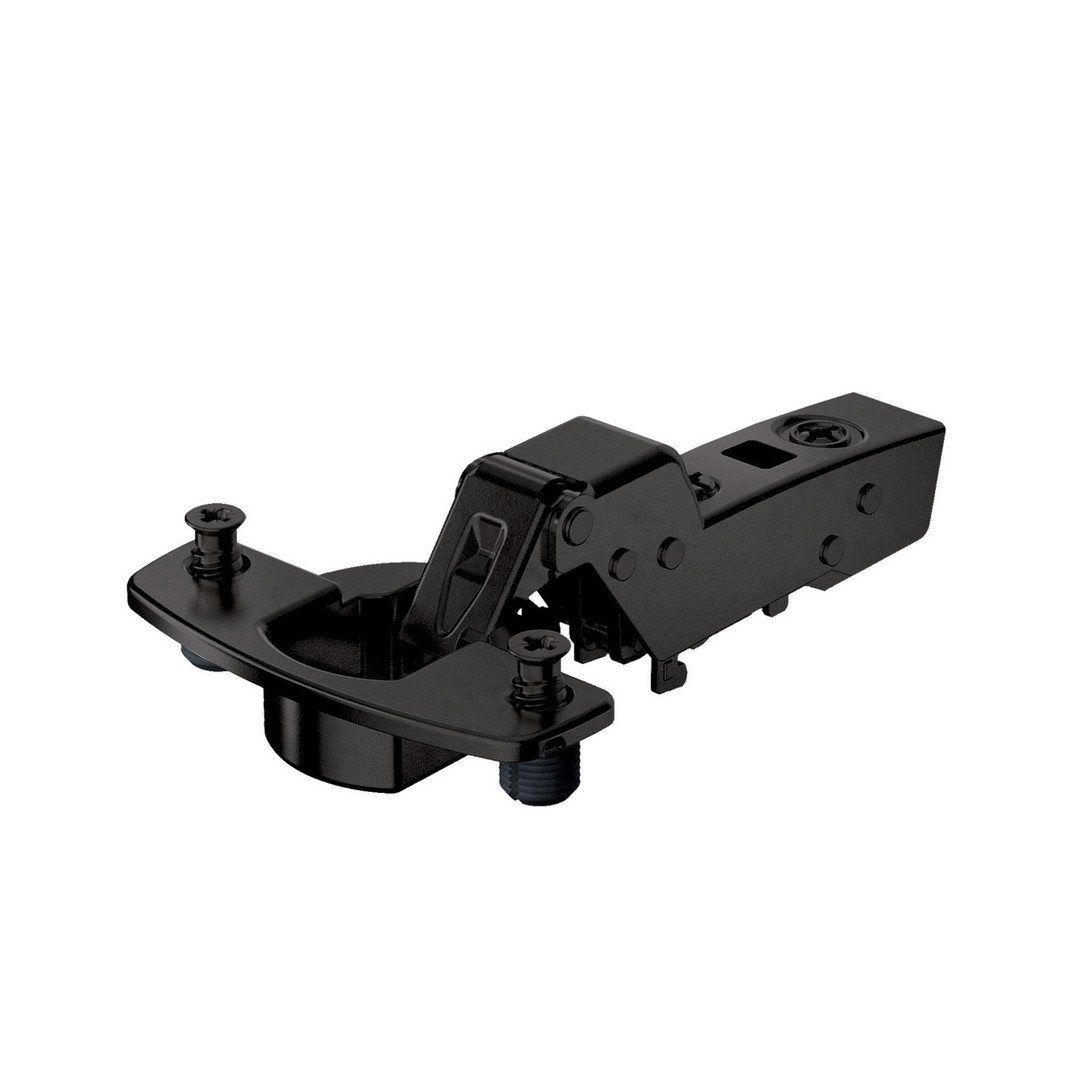 Hettich Sensys 110°-Scharnier ohne Schließautomatik (Sensys 8675), in obsidianschwarz, einliegend, Öffnungswinkel 110°, TH-Bohrbild 52 x 5,5 mm, mit Spreizmuffen (ø 10 x 11)