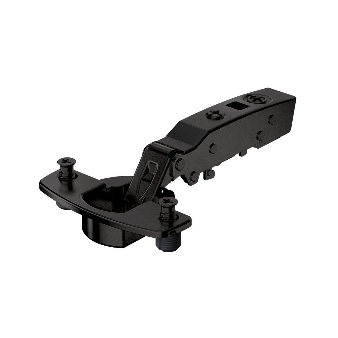 HETTICH Sensys 110°-Scharnier ohne Schließautomatik (Sensys 8675), in obsidianschwarz, vorliegend, Öffnungswinkel 110°, TH-Bohrbild 52 x 5,5 mm, mit Spreizmuffen (ø 10 x 11)