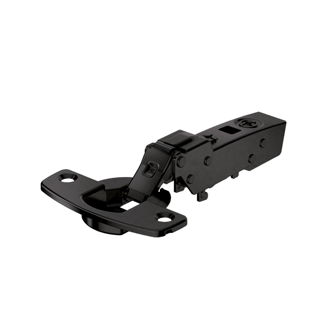 Hettich Sensys Dünntürscharnier, Türdicke ab 10 mm, mit integrierter Dämpfung (Sensys 8646i), in obsidianschwarz, halb vorliegend, Öffnungswinkel 110°, Bohrbild TH 52 x 5,5 mm, zum Anschrauben (-)