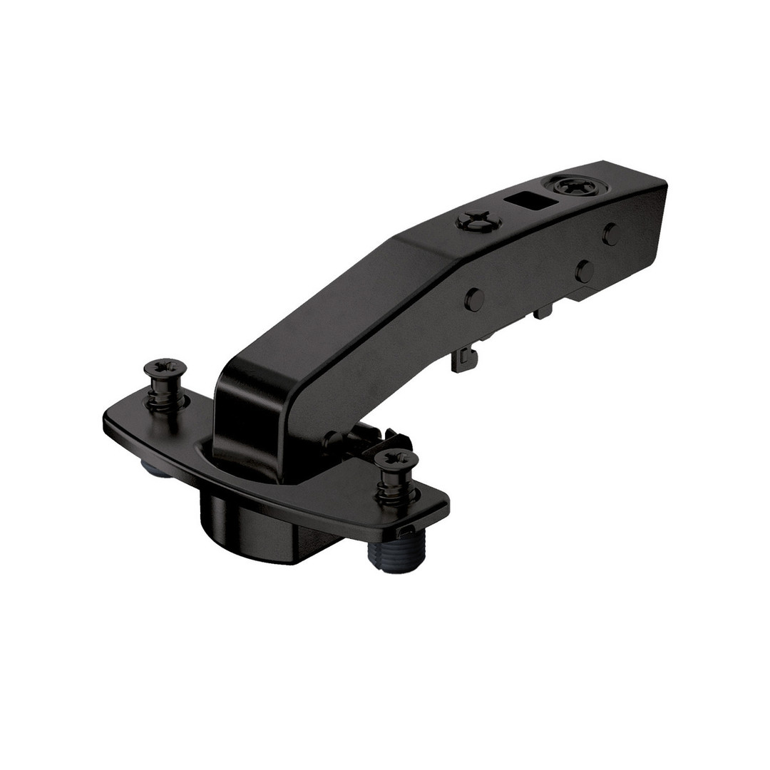 Hettich Sensys Winkelscharnier W90 ohne Schließautomatik (Sensys 8669 W90), in obsidianschwarz, einliegend, Öffnungswinkel 95°, TH-Bohrbild 52 x 5,5 mm, mit Spreizmuffen (ø 10 x 11)