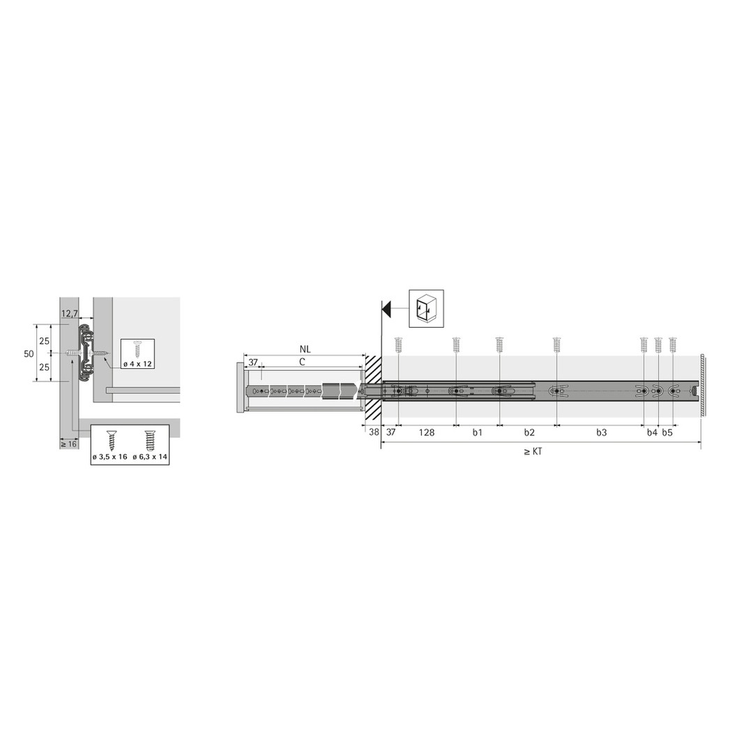 HETTICH Überauszug Kugelauszug KA 4932-Set - links/rechts - Seitenmontage - 12,7 mm Einbaubreite - 60 kg - 600 mm