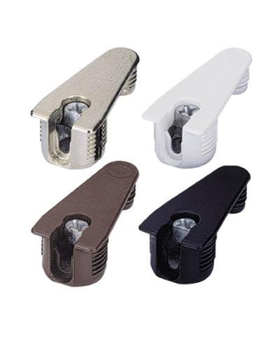 - Zierliche Verbindungsbeschläge für form- und kraftschlüssige Verbindungen von Fachböden mit Seitenwänden nach bewährtem Exzenter-Rastprinzip