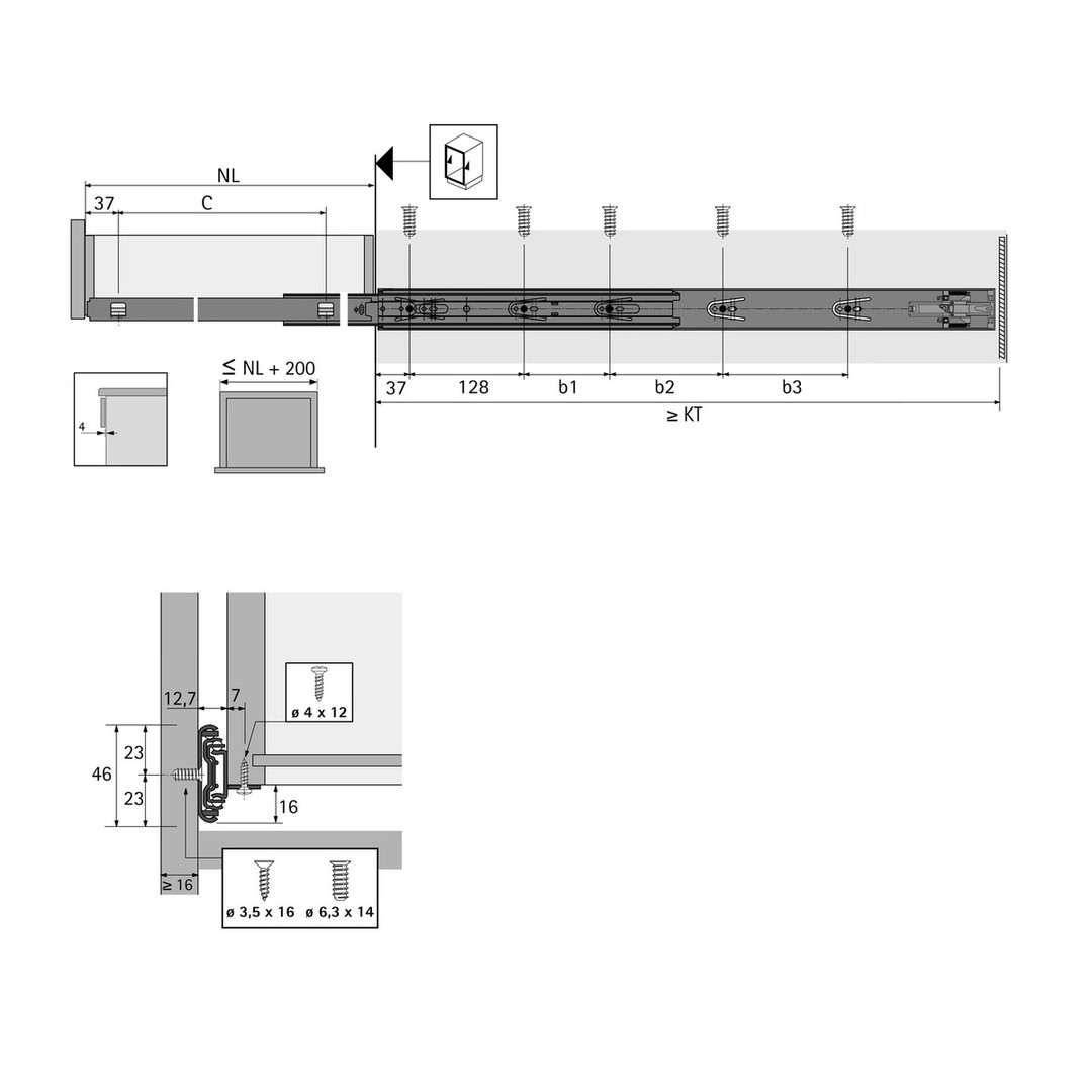 - Bei Nennlänge 300 beträgt der Auszugsweg nur 293 mm