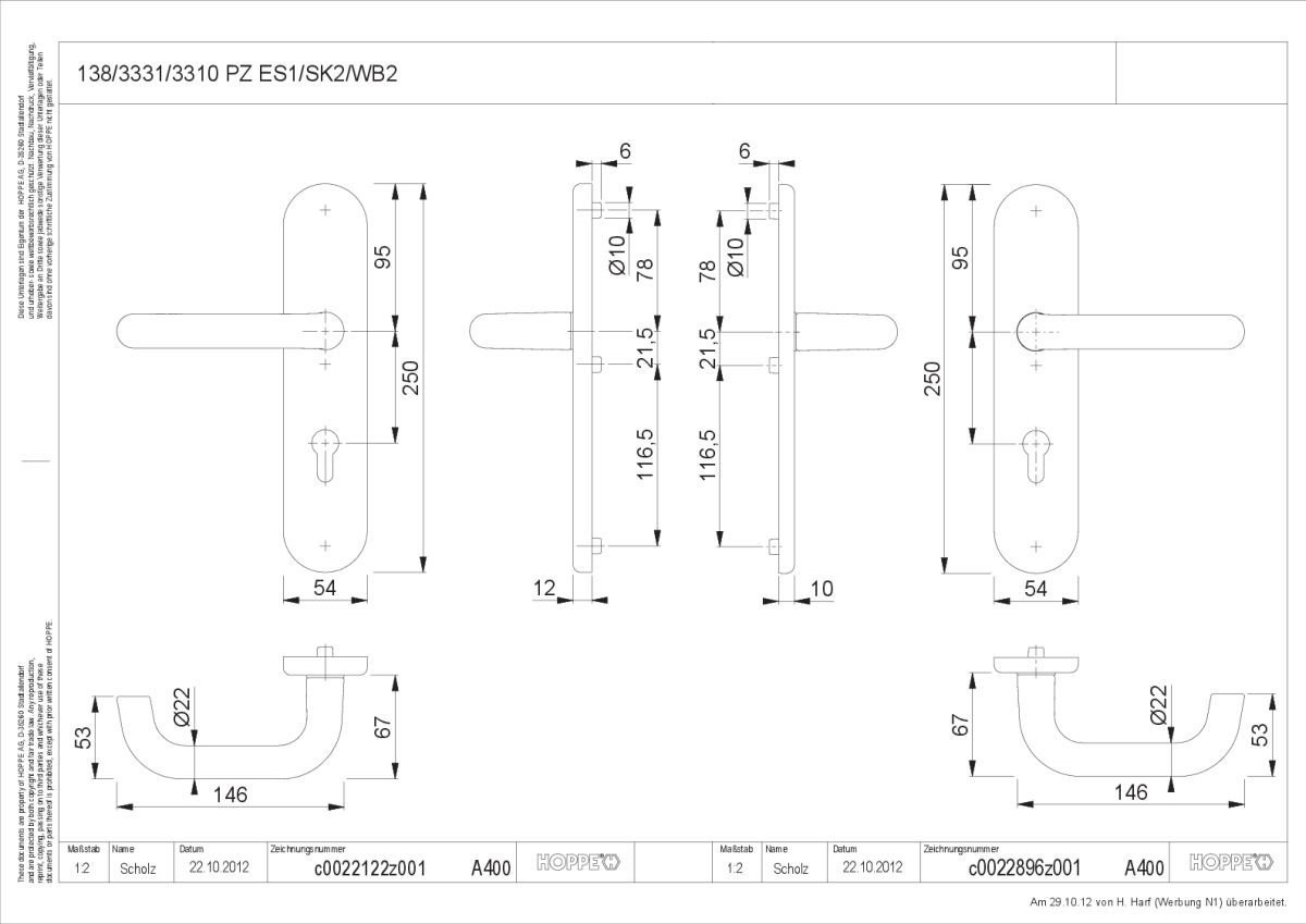HOPPE H.T. Schutz Drückergarnitur PZ 92 SK2 Paris F1