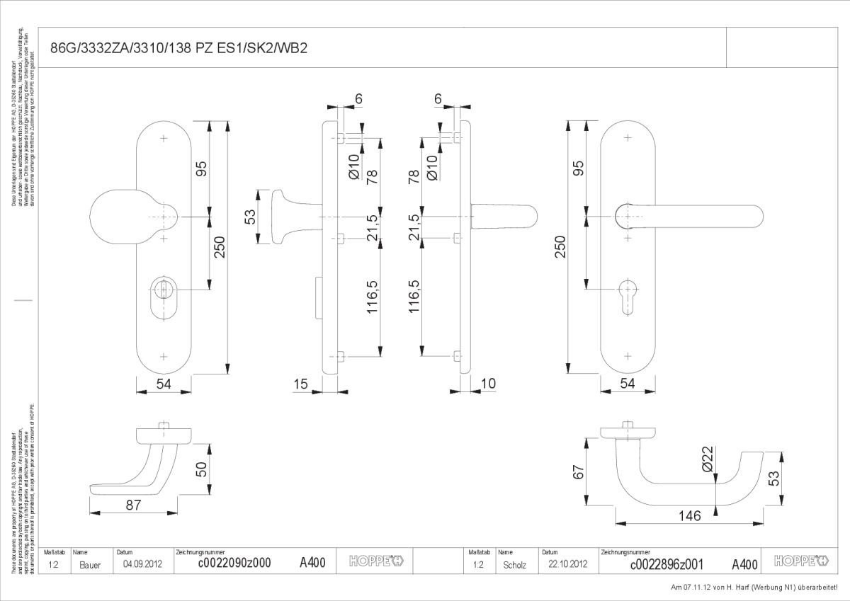 HOPPE H.T. Schutz Wechselgarnitur PZ 92 ZA SK2 Paris F1