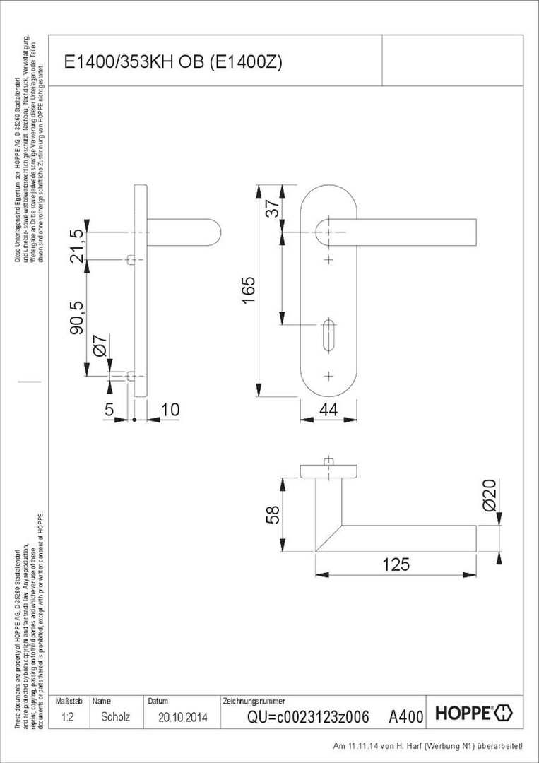 - Lagerung: Türgriffe fest/drehbar, Rückholfedern, HOPPE-Steckgriff-Verbindung mit Kugel-Arretierung Sertos ®, wartungsfreie Gleitlager