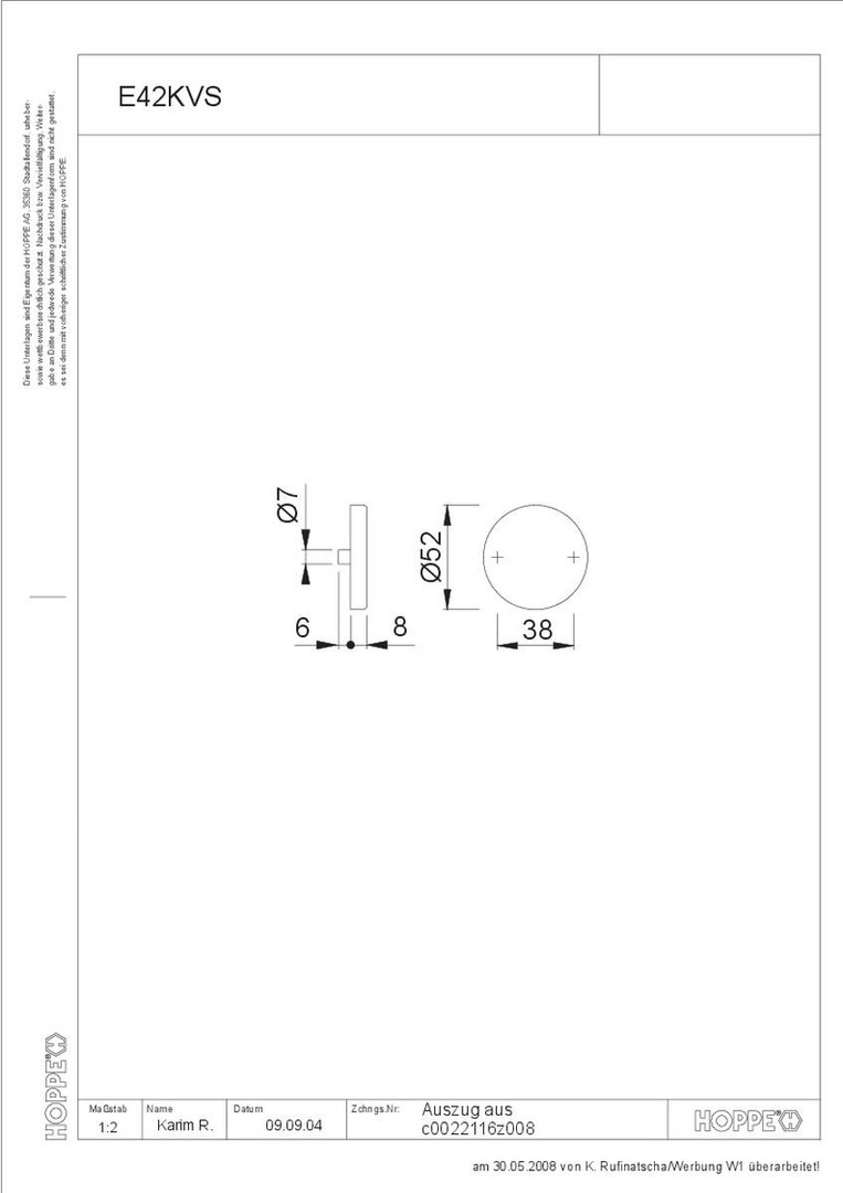 HOPPE Schlüsselrosettenpaar E42KVS, Edelstahl F69, BLIND