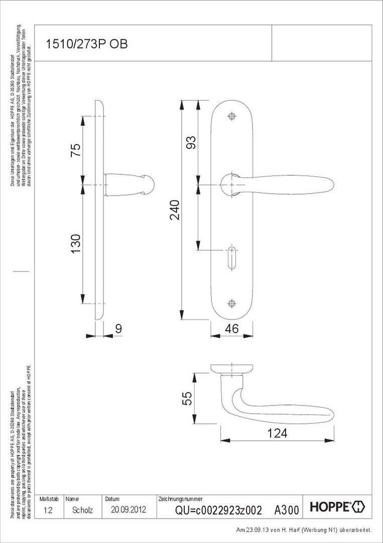 HOPPE Z.T. Langschild-Drücker-Garnitur "SSV Verona" - Alu F1 - BB