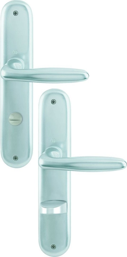 HOPPE-Aluminium-Langschild-Türgriff-Garnitur mit Schlitzkopf/Olive für Bad/WC-Türen
