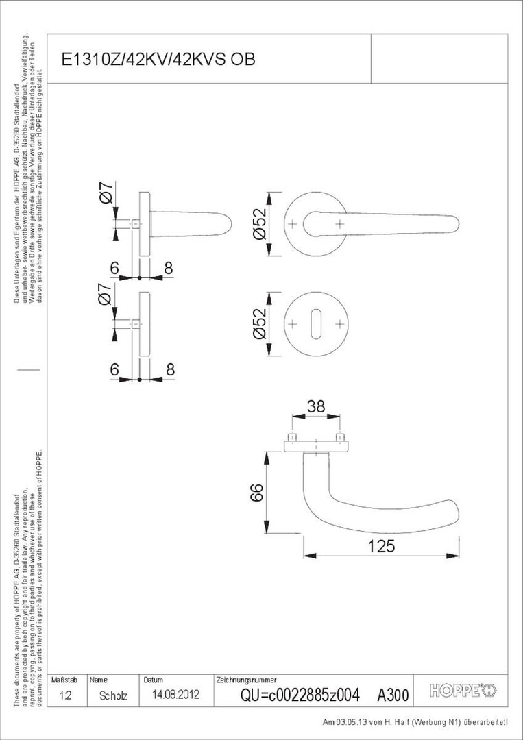 Hoppe AG 368938 Beschläge Am Plausdorfer Tor 13, 35260 Stadtallendorf faxtoedi@hoppe.com