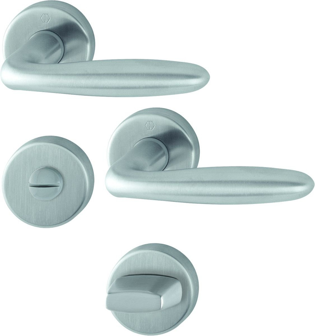 HOPPE-Edelstahl-Rosetten-Türgriff-Garnitur mit Schlitzkopf/Olive für Bad/WC-Türen