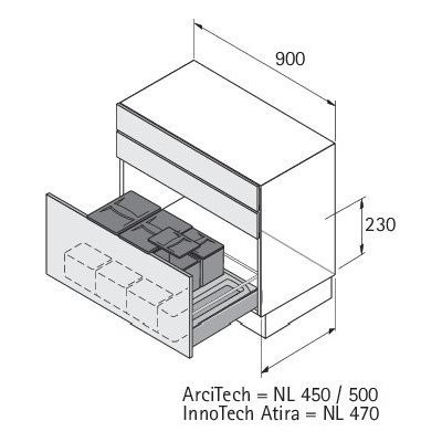 Nennlänge (NL) 450 / 500 mm oder für InnoTech Atira, Nennlänge (NL) 470 mm - Für Schrankbreite 900 mm