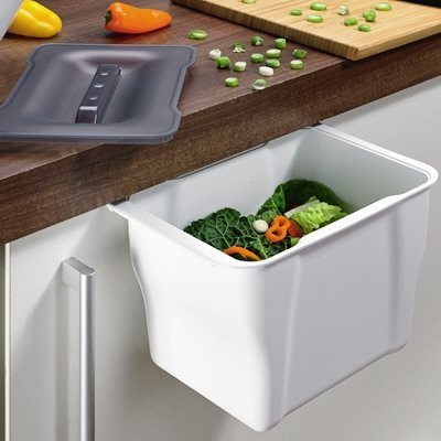 - Kann an die Front (max. 20 mm Frontdicke) oder einen Stangengriff angehängt oder direkt auf der Arbeitsplatte platziert werden