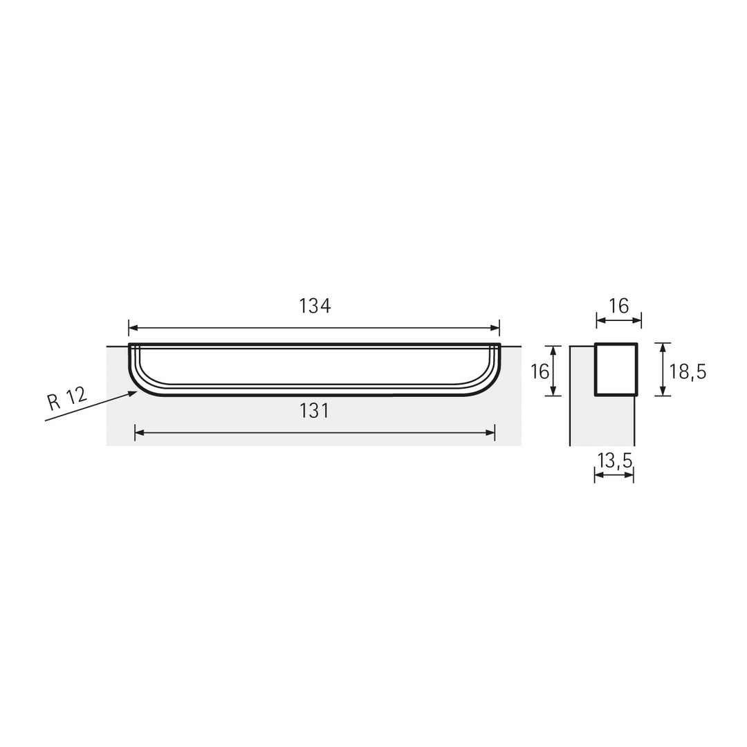 Hettich Einsetzgriff Genzone, L 134 mm, B 16 mm, H 16 - 18,5 mm, Schwarz matt