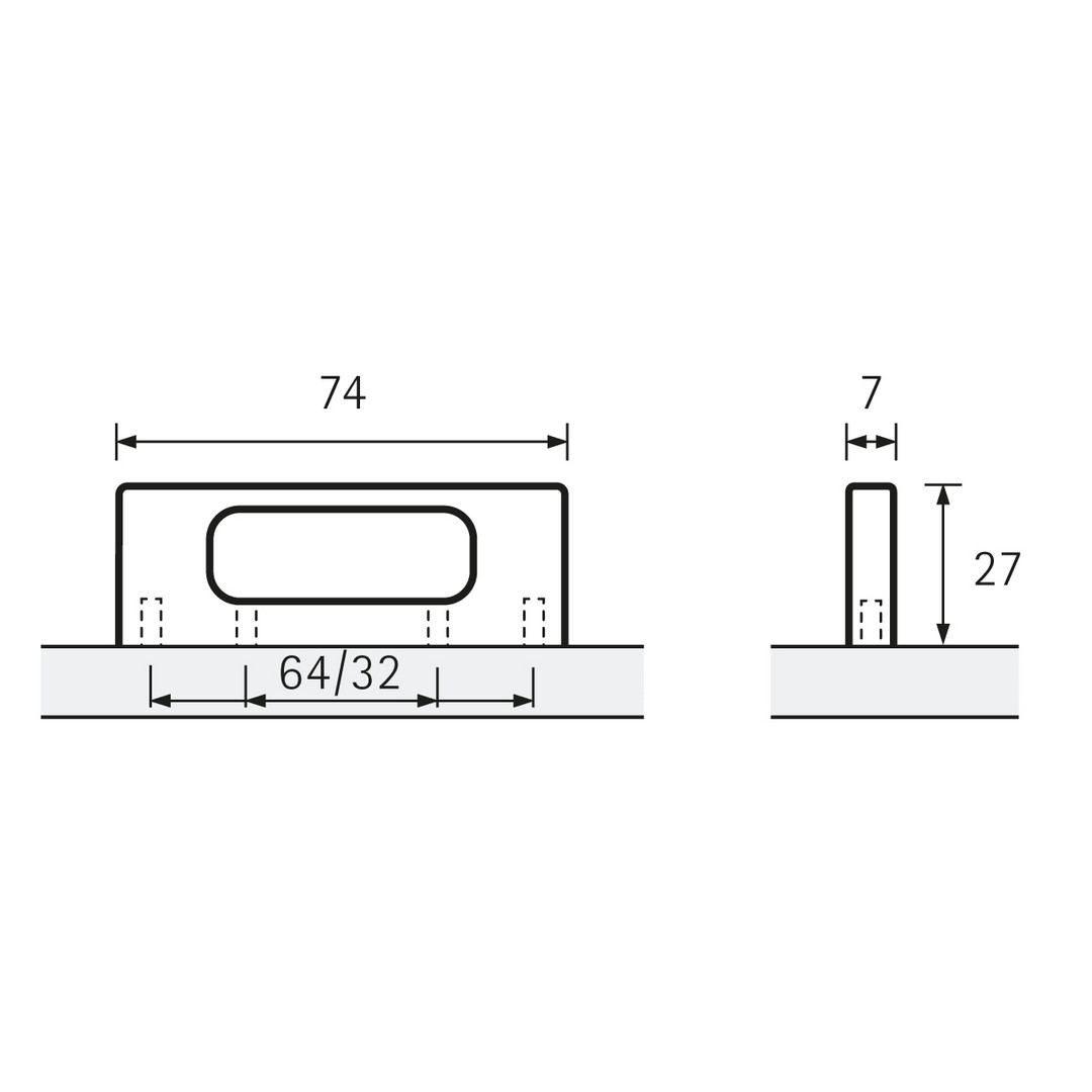 Hettich Griff Fermo, Bohrabstand 32 / 64 mm, L 74 mm, B 7 mm, H 27 mm, Schwarz matt