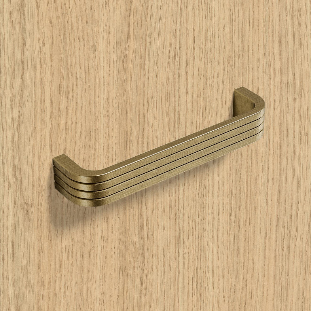 Griff Pomezia, Bohrabstand 96, L 104 mm, B 20 mm, H 30 mm, Messing Optik antik