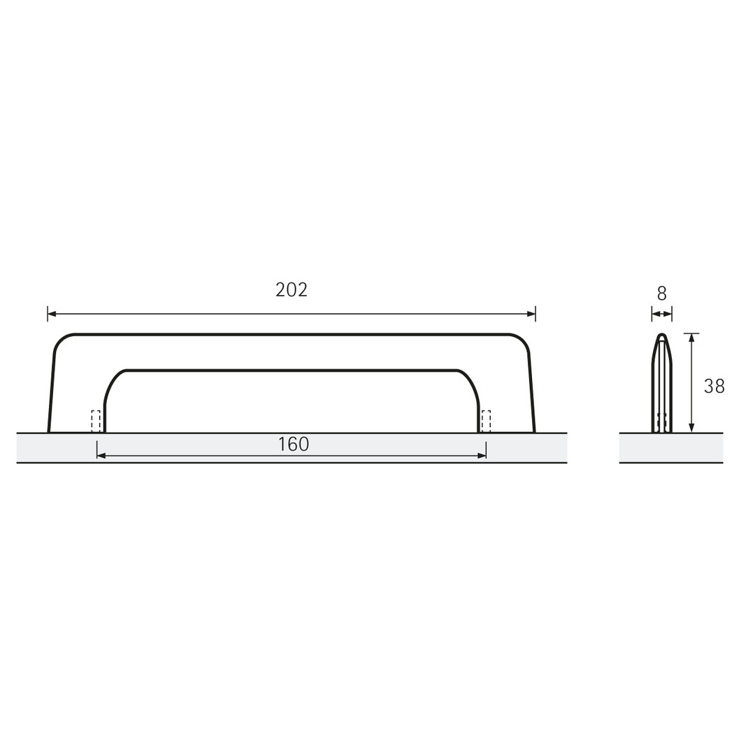 Hettich Griff Suasa, Bohrabstand 160, L 202 mm, B 8 mm, H 38 mm, Schwarz matt