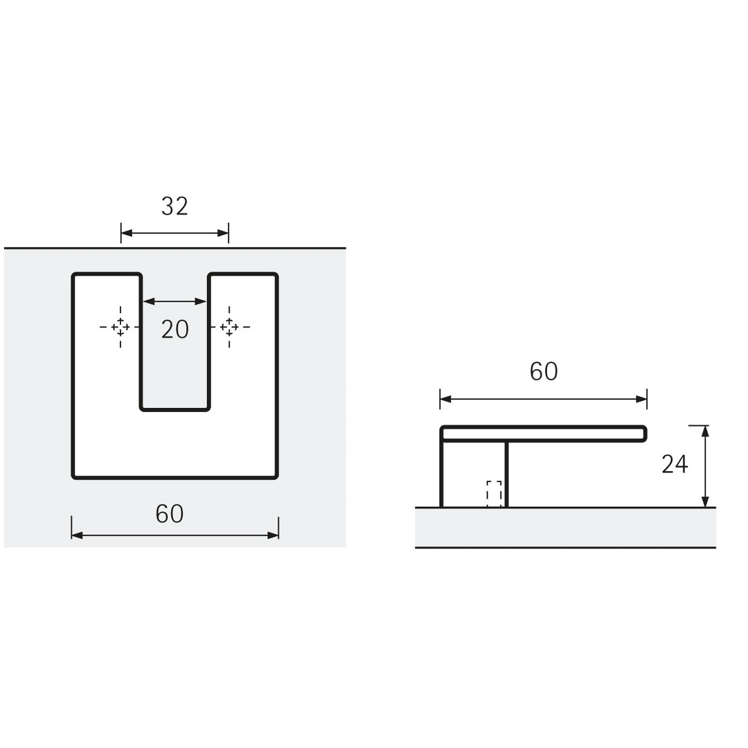 Hettich Griff Vigilia, Bohrabstand 32, L 60 mm, B 60 mm, H 24 mm, Schwarz matt