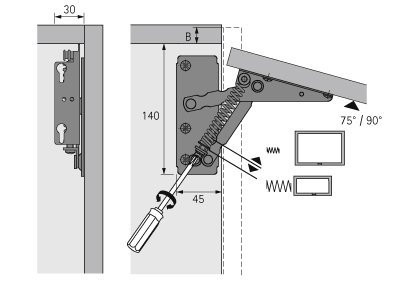 Hochklapp - Beschlag Lift, 80 - 220 N, 4.6 kg, 75°